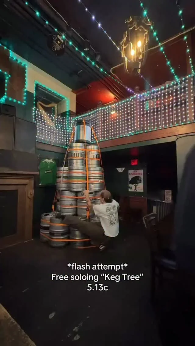 Well, not to brag… but we managed to get the keg Christmas tree down before February this year. It came down today, but not before our 7th best bartender Riley attempted this mighty ascent.